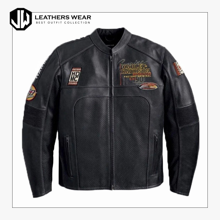 انطلق بأناقة لا مثيل لها مع جاكيت هارلي ديفيدسون الجلدي الأسود للرجال . مصنوع من جلد فاخر، يجمعهذا الجاكيت بين شعار هارلي الكلاسيكي ومتانة وراحة لا مثيل لها، مما يجعله مثاليًا لكل مغامرة.