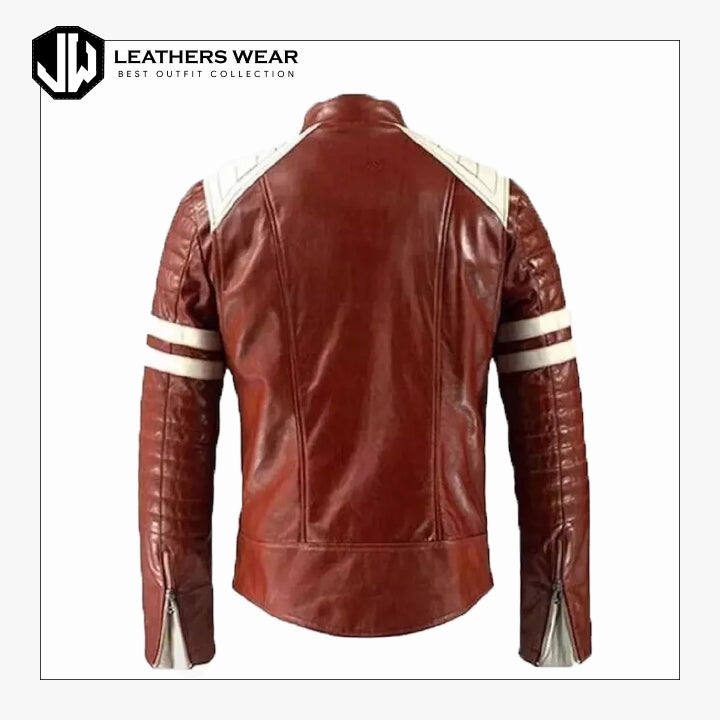 تم تصميم هذه السترة الجلدية الحمراء المصنوعة من جلد البقر لتكون أنيقة ومصممة لتدوم طويلاً، وهي مزيج مثالي بين الموضة والوظيفة.