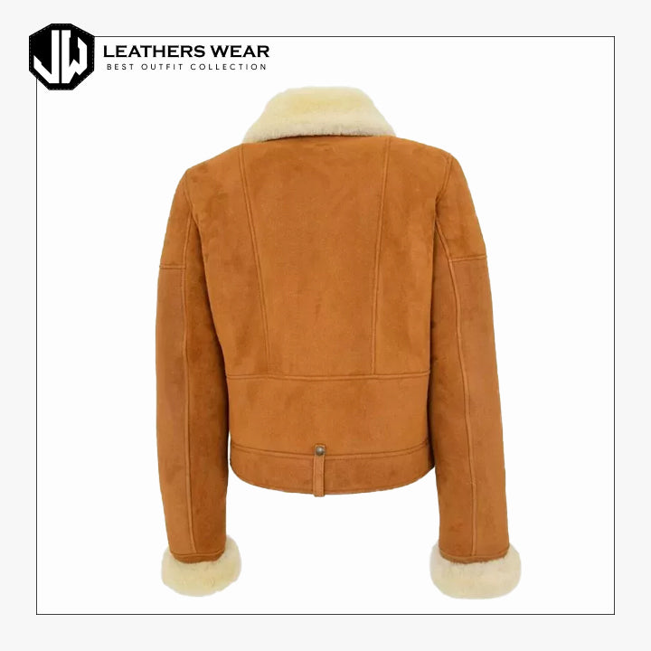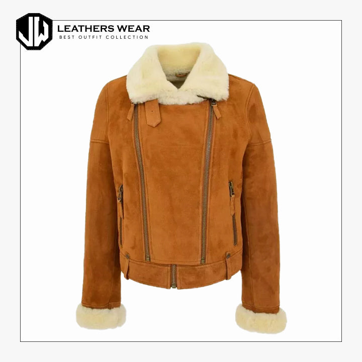 سترة راكبي الدراجات النارية من جلد الغنم للنساء
