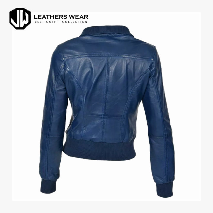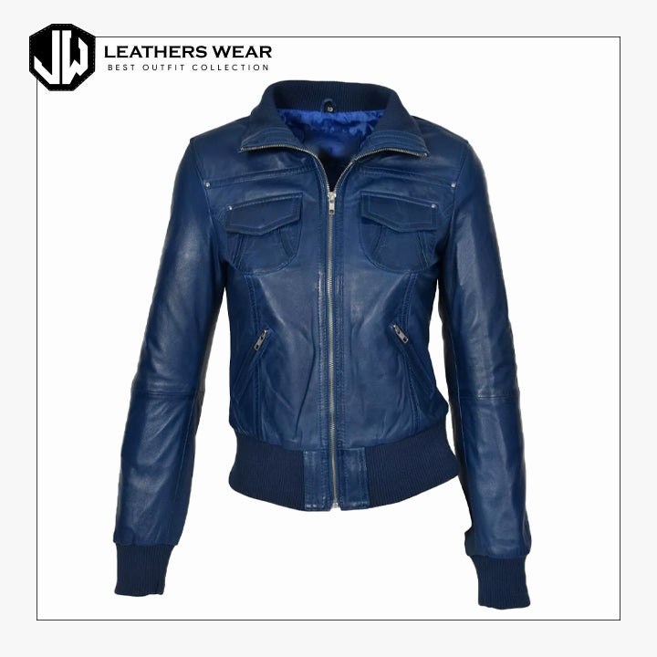 سترة جلدية نسائية زرقاء