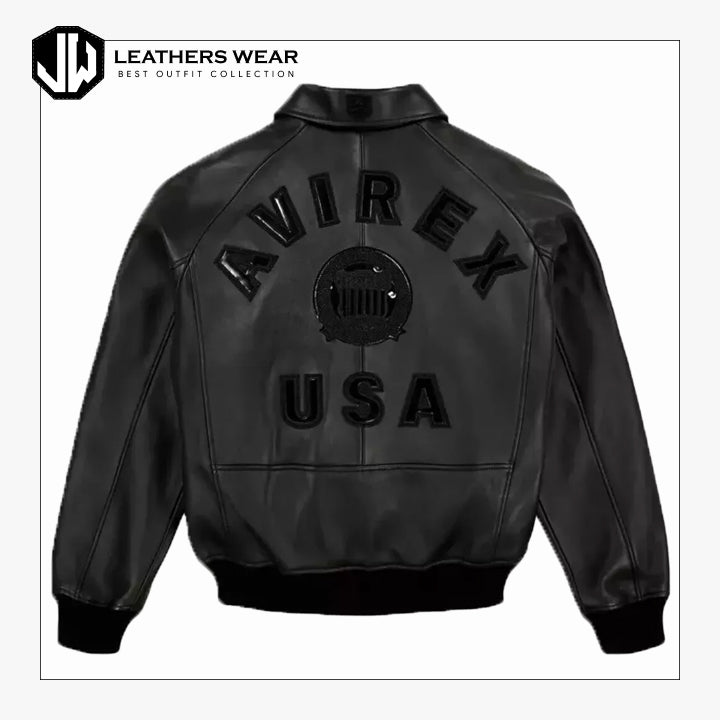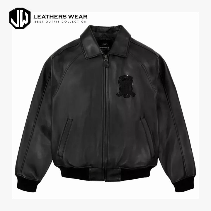 Avirex Mens Black bomber Leather Jacket