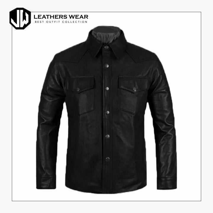 Elevate your style game with the Men's Beige Leather Shirt, a statement piece that complements every wardrobe with its understated elegance.