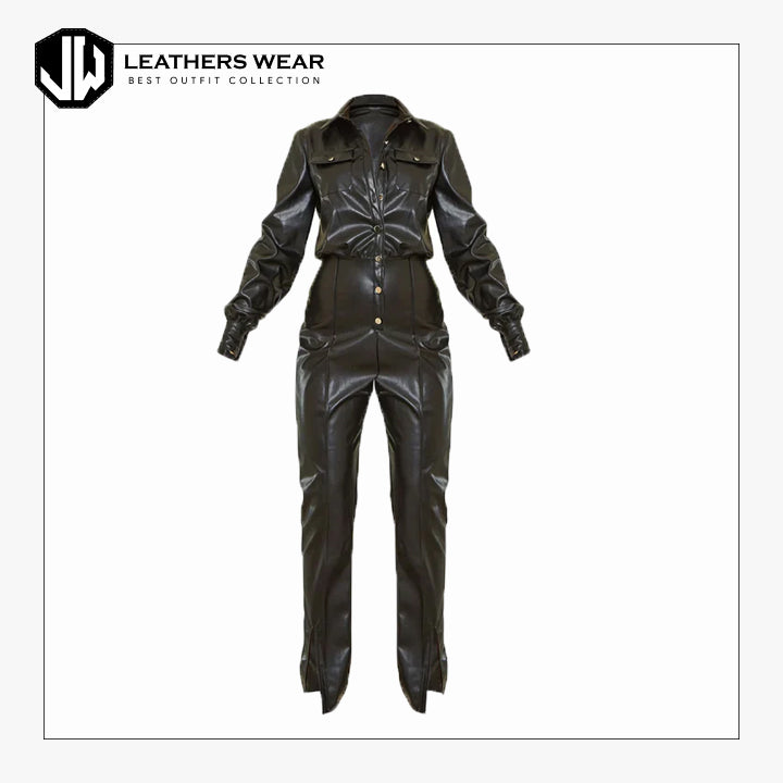 Introducing our Black Leather Jumpsuit, a sleek and bold statement piece that redefines confidence and style. Crafted from premium, genuine leather, this jumpsuit is designed to mold to your body, enhancing your silhouette while providing ultimate comfort. With its smooth texture and timeless black hue, itโs perfect for both casual outings and chic evening events.