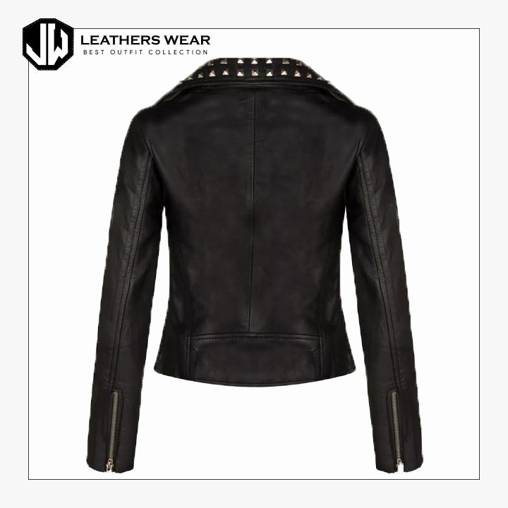 Upgrade your wardrobe with our Black Studded Jacket Womens, designed for a daring and chic look. Made from premium genuine or faux leather, this jacket features high-quality metal studs for a statement-making appeal. Whether for casual outings or biker fashion, this piece offers both durability and edge.