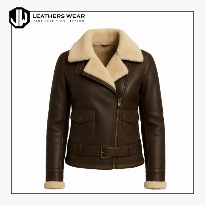 Stay warm and stylish with our Brown Shearling Jacket for Women. Crafted from high-quality leather or vegan alternatives, this jacket features a plush shearling lining that provides superior insulation and classic appeal. The rich brown color adds a natural, earthy tone that complements any winter wardrobe.