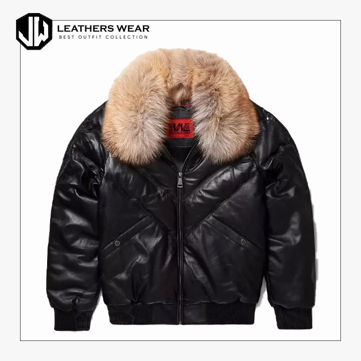 Bubble Black Real Leather Jacket