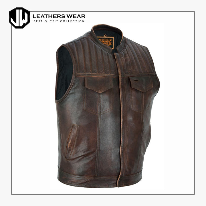 Ride in style with our Distressed Brown Leather Motorcycle Vest, crafted for bikers who value comfort, functionality, and a vintage aesthetic.