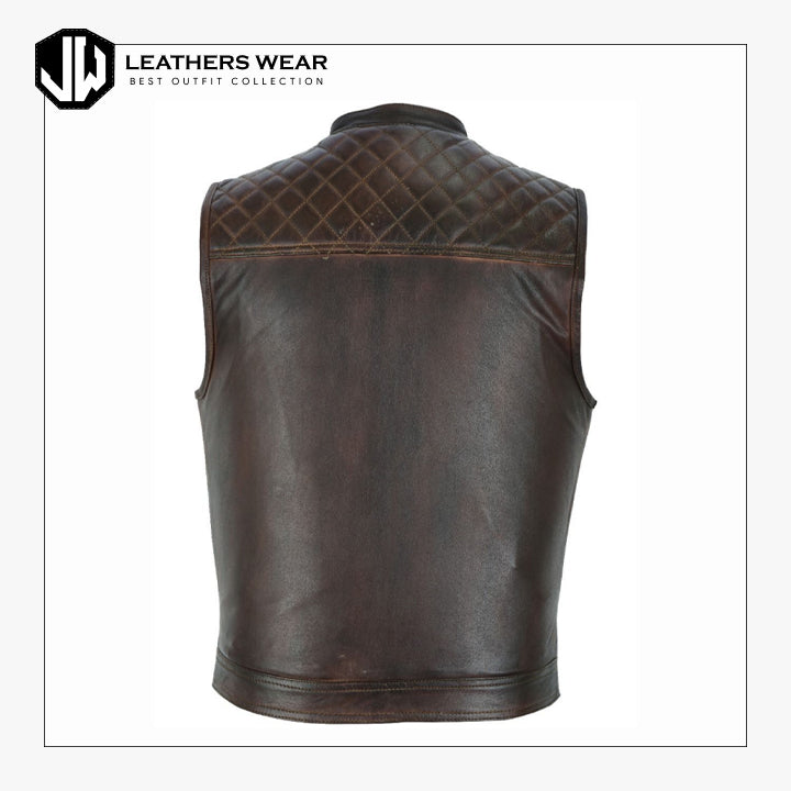 Distressed Brown Leather Motorcycle Vest