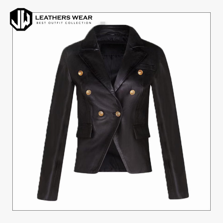 Make a bold statement with this faux leather blazer, the ultimate choice for those who love timeless fashion with a contemporary twist.