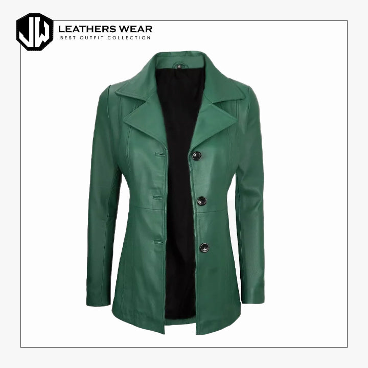 Add a bold and elegant touch to your winter wardrobe with the Green Leather Winter Blazer. Crafted with premium materials, this blazer combines warmth, durability, and high-end style, making it a perfect choice for cold-weather fashion.