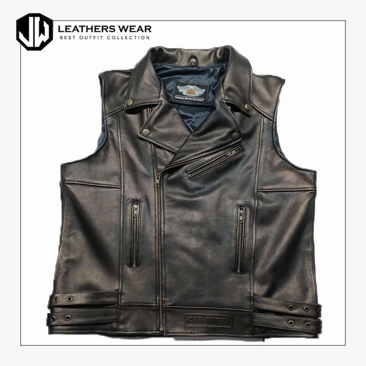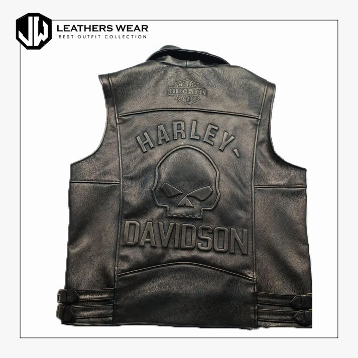 Show your biker pride with the Harley Davidson Genuine Embossed Leather Vest, crafted from high-quality cowhide leather and featuring the iconic Harley Davidson logo embossed on the back. This vest offers durability, comfort, and timeless biker style – perfect for road trips, rallies, or casual wear.