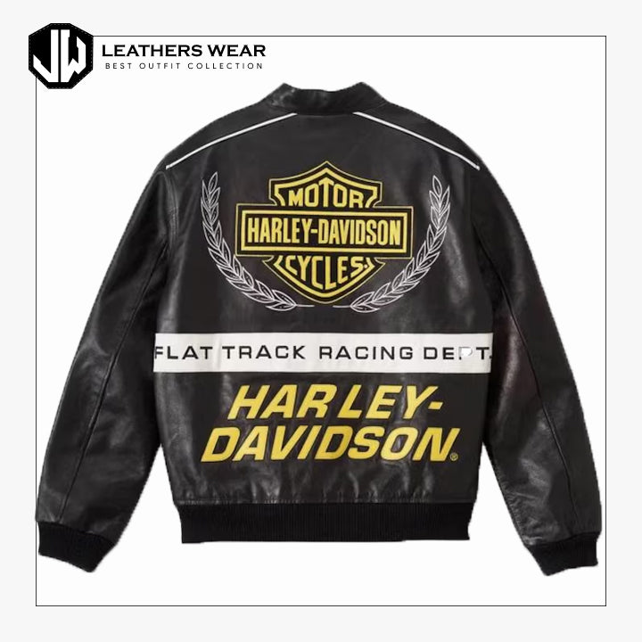 Unleash your inner racer with the Harley-Davidson Women Racing Cowhide Leather Jacket. Designed for motorcycle enthusiasts and fashion-forward riders, this jacket features premium cowhide leather, engineered for durability and flexibility while riding. The sleek, race-inspired design offers both protection and style, whether on the road or off.