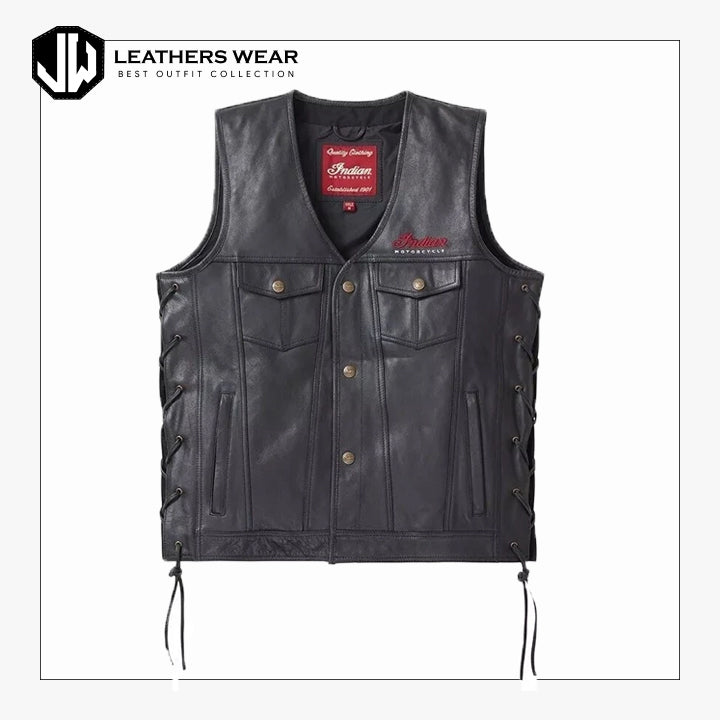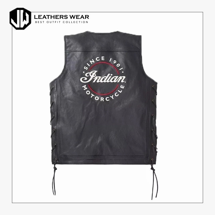 Gear up with the Indian Motorcycle Men’s Black Vest — designed for riders who demand iconic looks and lasting performance. Crafted from durable genuine leather, this vest delivers a rugged edge and functionality whether you're on the highway or at a rally.
