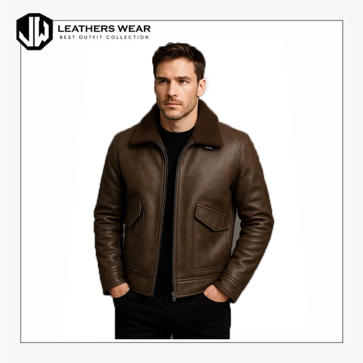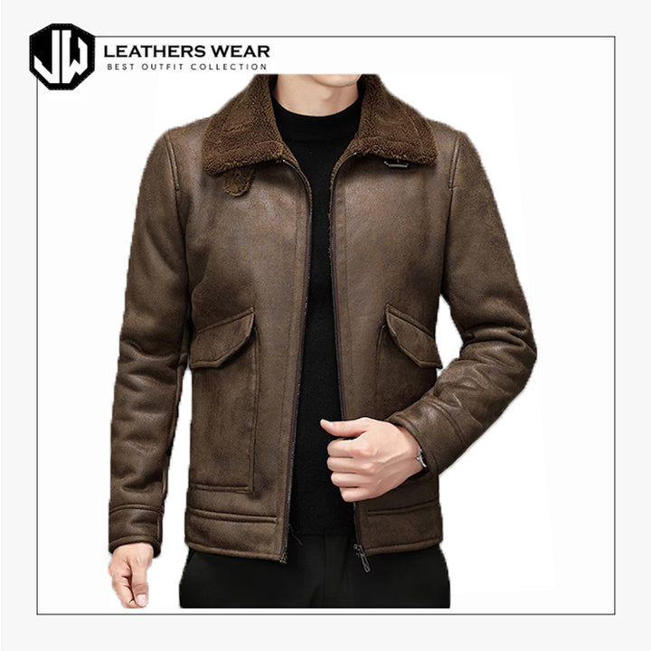 Designed for men who want style without sacrificing warmth, this leather sherpa jacket is a timeless winter essential.