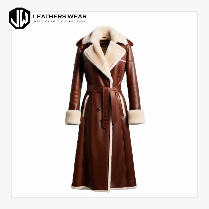 The Luxurious Brown Leather Shearling Coat is a statement piece for those who appreciate both style and functionality. Keep warm while turning heads in this elegant, expertly crafted outerwear essential.