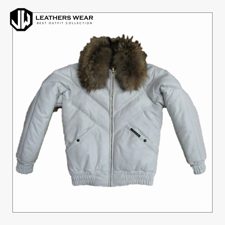 Stay warm and stylish this winter with our Men Bubble V Bomber Sheepskin Leather Jacket, crafted from 100% genuine sheepskin leather for unmatched softness and durability. The plush bubble quilted design offers superior insulation, while the V bomber silhouette with a fur collar adds a luxurious touch. Perfect for both streetwear fashion and cold-weather comfort.