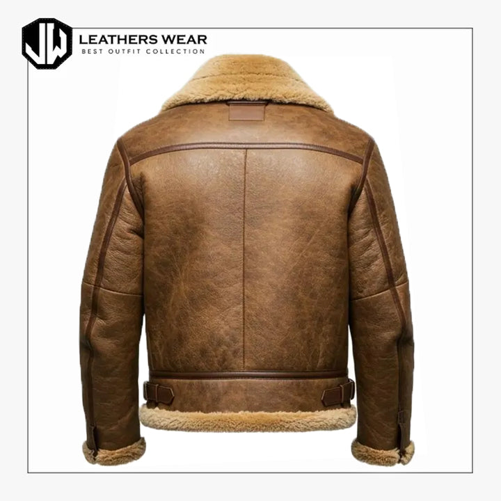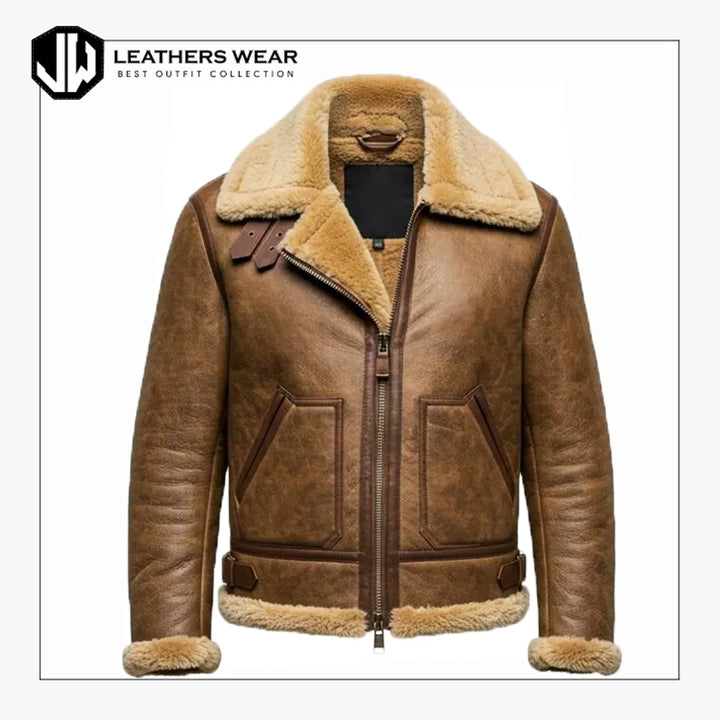 Stay protected from the cold in our Mens B3 Bomber Brown Jacket, crafted from 100% genuine sheepskin leather with a soft shearling lining for unbeatable insulation. Inspired by the original WWII aviator design, this jacket offers rugged durability with timeless fashion appeal. Featuring a buckle strap collar, heavy-duty zipper, and handwarmer pockets, it delivers comfort, warmth, and sophistication — perfect for winter wear and outdoor adventures.