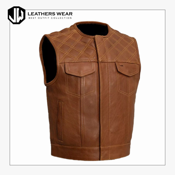 Elevate your biker look with the Mens Genuine Brown Biker Vest, crafted from high-quality leather to provide durability and style. Designed for motorcycle enthusiasts, this vest offers both practicality and a timeless aesthetic.