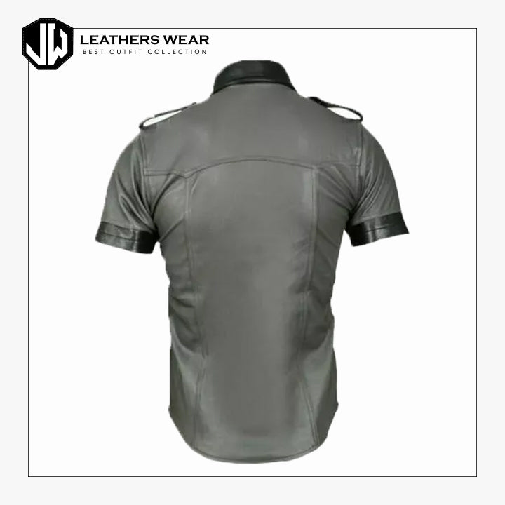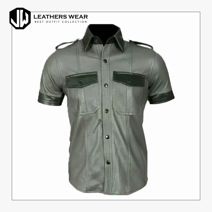 Elevate your wardrobe with the Men's Gray Leather Half Shirt, a unique combination of edgy design and everyday wearability. Crafted from high-quality genuine leather, this half-sleeve shirt is perfect for men who love to make a statement.