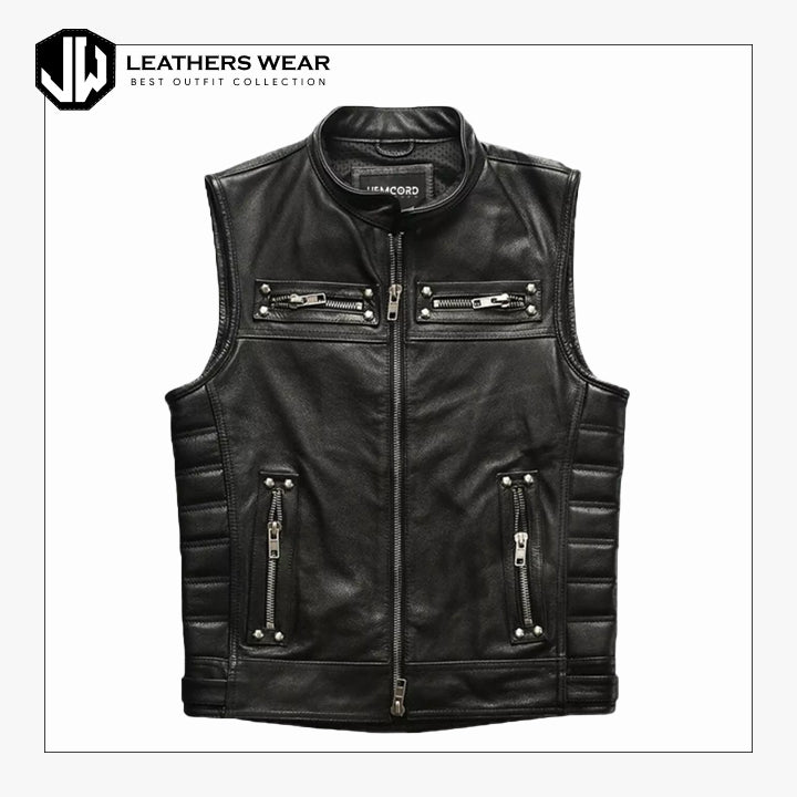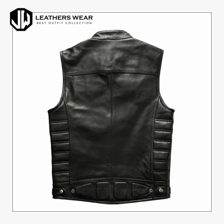Elevate your riding gear with the Mens Ribbed 100% Genuine Leather Biker Vest, designed for the modern biker who values both style and functionality. This vest combines the durability of genuine leather with a ribbed texture, offering a unique look and comfortable fit.