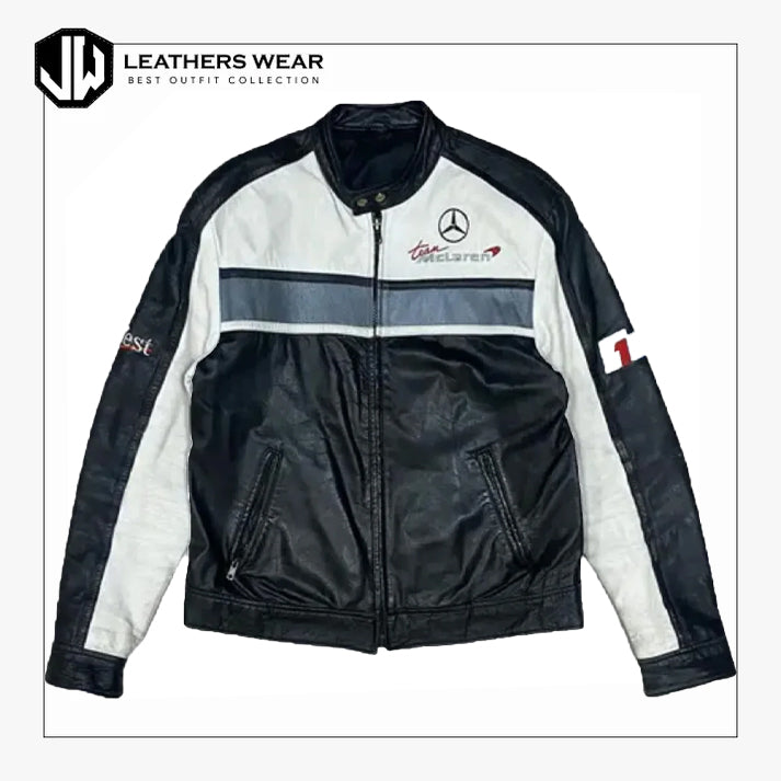 Whether you’re trackside or making a stylish entrance, the Mercedes Benz F1 Leather Jacket is your go-to for showcasing luxury and speed.