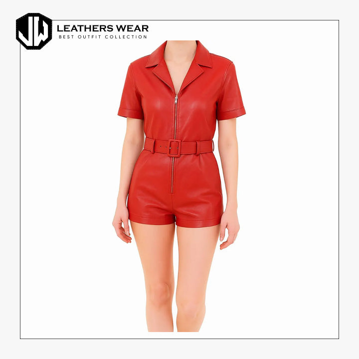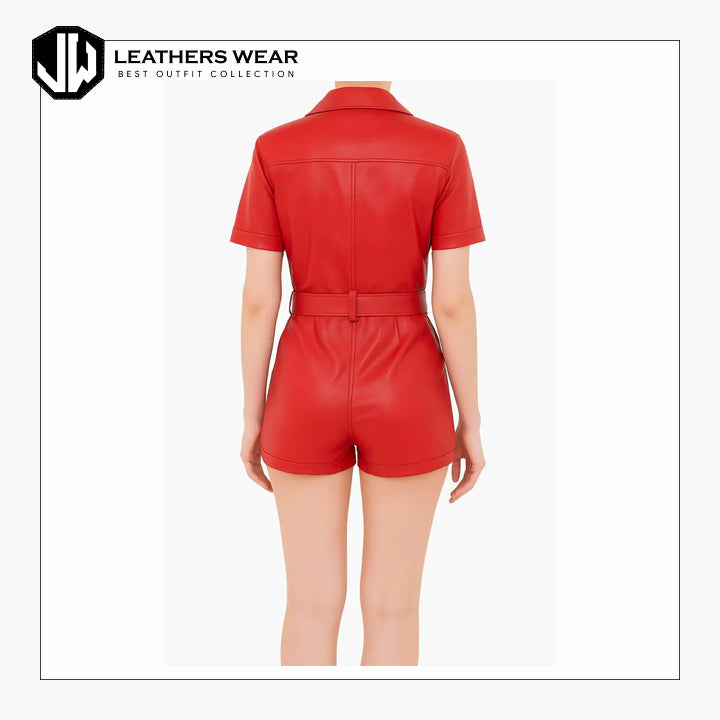 Whether paired with boots or heels, this red leather romper is your go-to for turning heads and owning the spotlight.