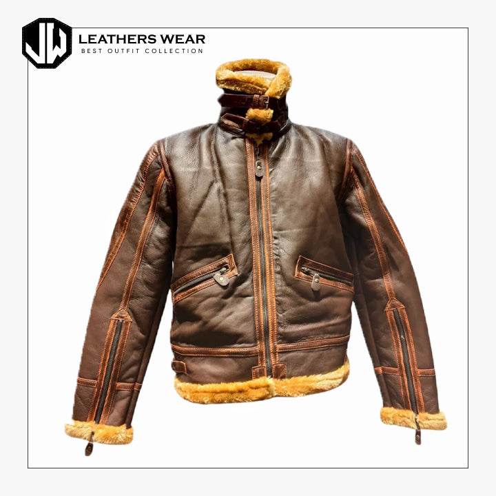 Experience timeless military fashion with the Vintage B3 Bomber Jacket, crafted from genuine sheepskin leather with a plush shearling lining. Inspired by the legendary WWII bomber pilots, this jacket is built for ultimate warmth and durability.