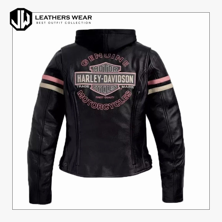 — designed for bold women who demand performance and style. Crafted from premium genuine leather, this jacket blends Harley’s iconic design with everyday versatility.