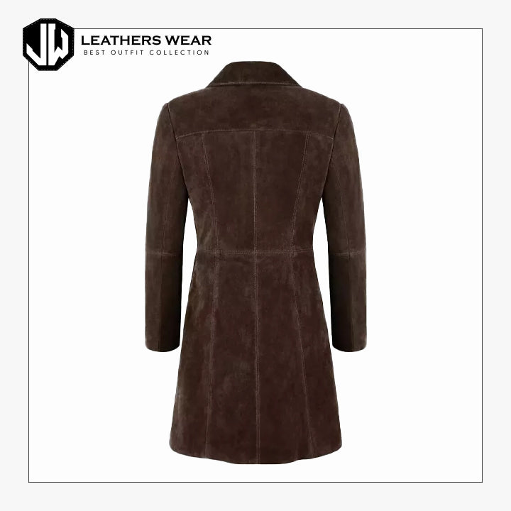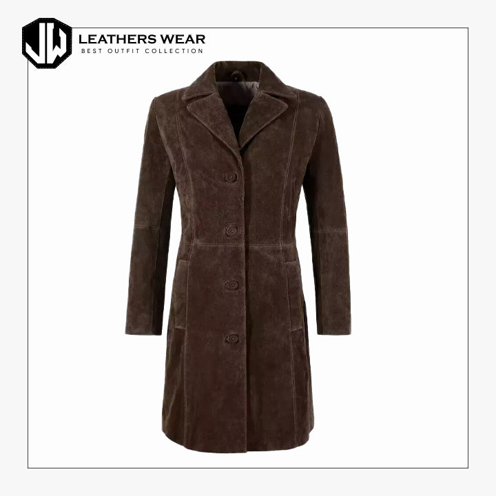 Perfect for transitioning between seasons, this suede leather trench coat is a must-have for any woman seeking a timeless, luxurious look.