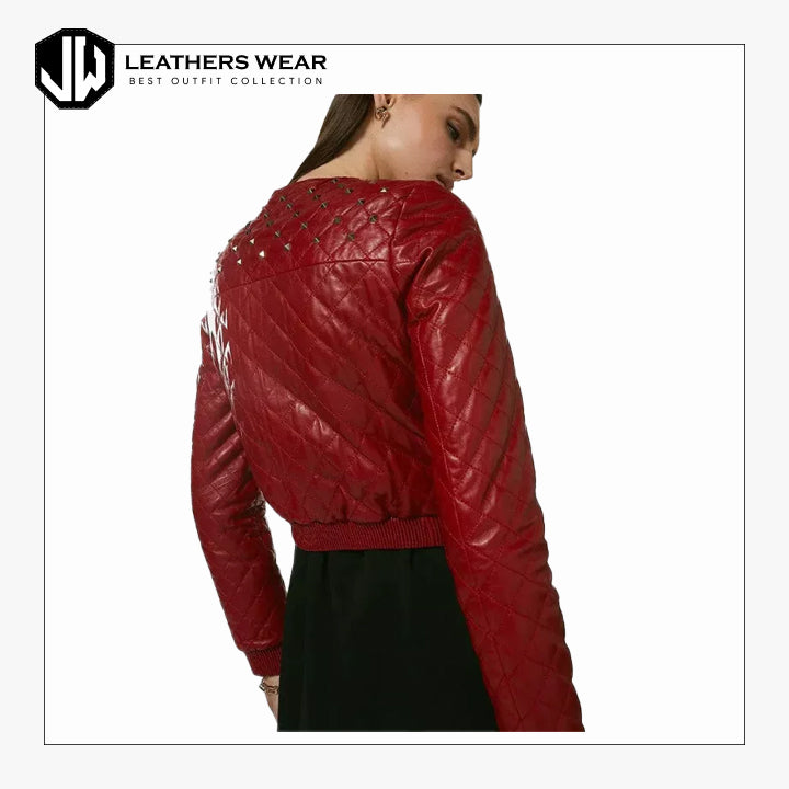 Make a statement with the Womens Studded Cropped Bomber Leather Jacket. Designed with a flattering cropped fit and edgy studded details, this jacket offers a perfect balance of style and comfort. Made from high-quality leather, it’s ideal for women who want to add a touch of rebellious charm to their wardrobe.