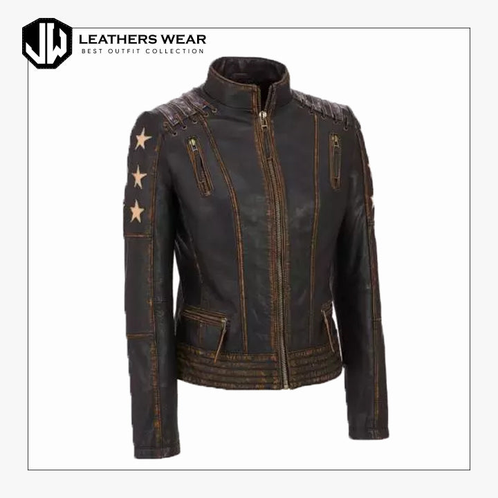 Elevate your edgy style with our Womens Vintage Biker Leather Jacket, a piece that seamlessly combines retro charm with modern flair. Crafted from premium-quality genuine leather, this jacket offers unmatched durability and a soft touch.