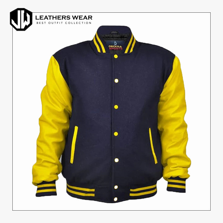 The Mens Varsity Leather Blue Jacket is the ultimate blend of timeless style and modern sophistication. Made from premium-quality leather, this jacket is not only stylish but also durable and built to last. Its classic varsity design, with ribbed cuffs and hem, adds a touch of retro flair, while the rich blue color gives it a contemporary edge, perfect for those who want to stand out.