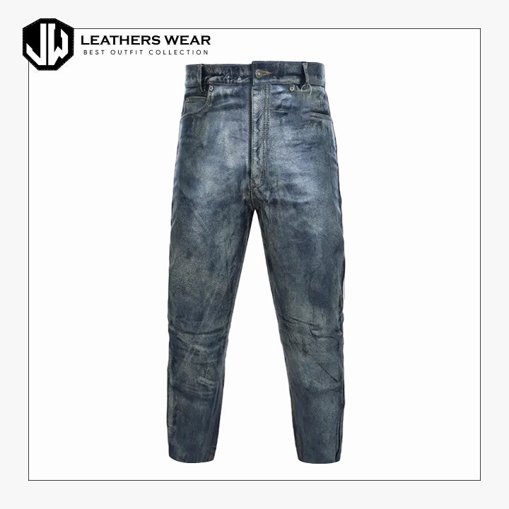 Upgrade your wardrobe with our Real Leather Distressed Jeans Style Pants. Designed to combine the rugged appeal of distressed denim with the luxury of genuine leather, these pants deliver unmatched style and durability. Ideal for casual outings or making a bold statement.