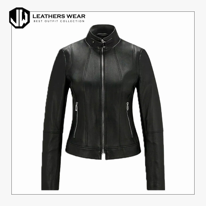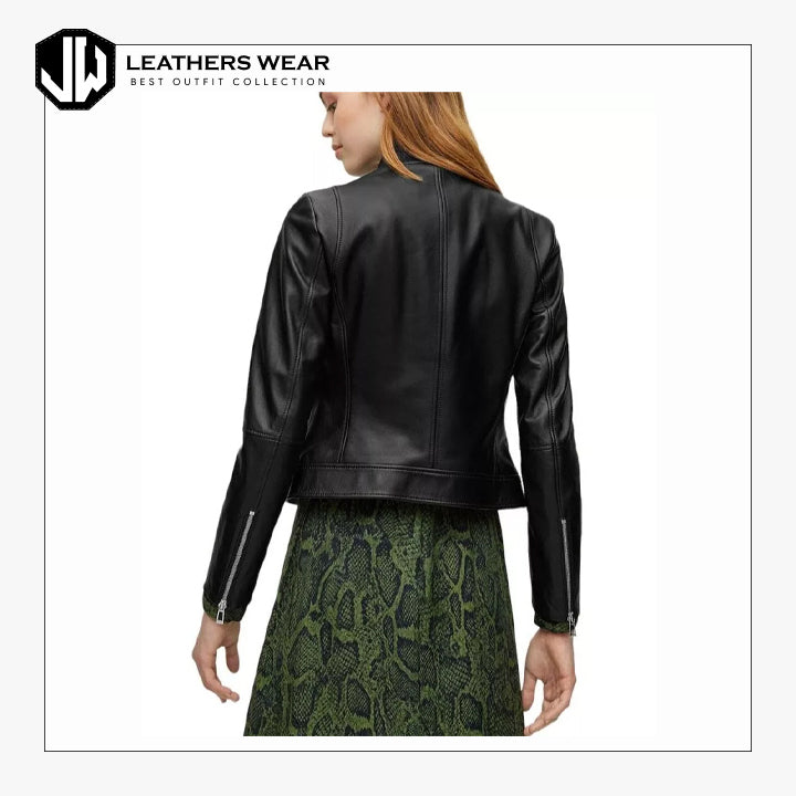 Introducing the Womens Black Leather Jacket, a timeless wardrobe essential for any fashion-forward woman. Crafted from premium quality leather, this jacket is designed to provide both style and comfort, making it perfect for every season. Its sleek, fitted silhouette enhances your shape, while the soft inner lining ensures warmth and coziness on cooler days.
