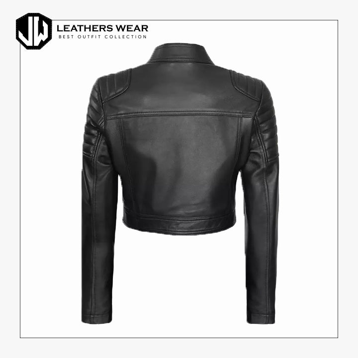 Womens Bomber Moto Cropped Leather Jacket