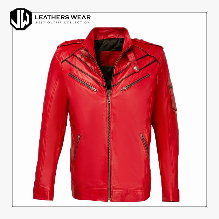 El yapımı erkek kırmızı deri ceket ile fark yaratın, işçilik ve stilin mükemmel bir karışımı. Bu canlı kırmızı ceket, birinci sınıf konforun tadını çıkarırken cesur bir moda ifadesi yaratmaya cesaret edenler için tasarlandı.